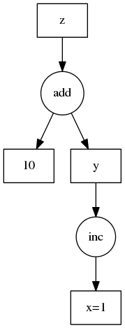 'z': (add, 'y', 10)}