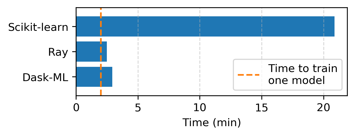 By this measure, Dask-ML and Ray model selection have the same level of
