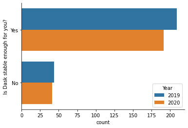 Historically this hasn’t been a problem, according to our survey last year most users were fairly happy with Dask’s stability.